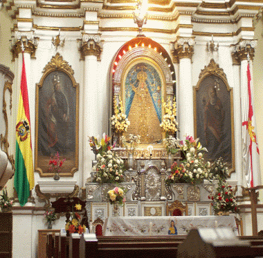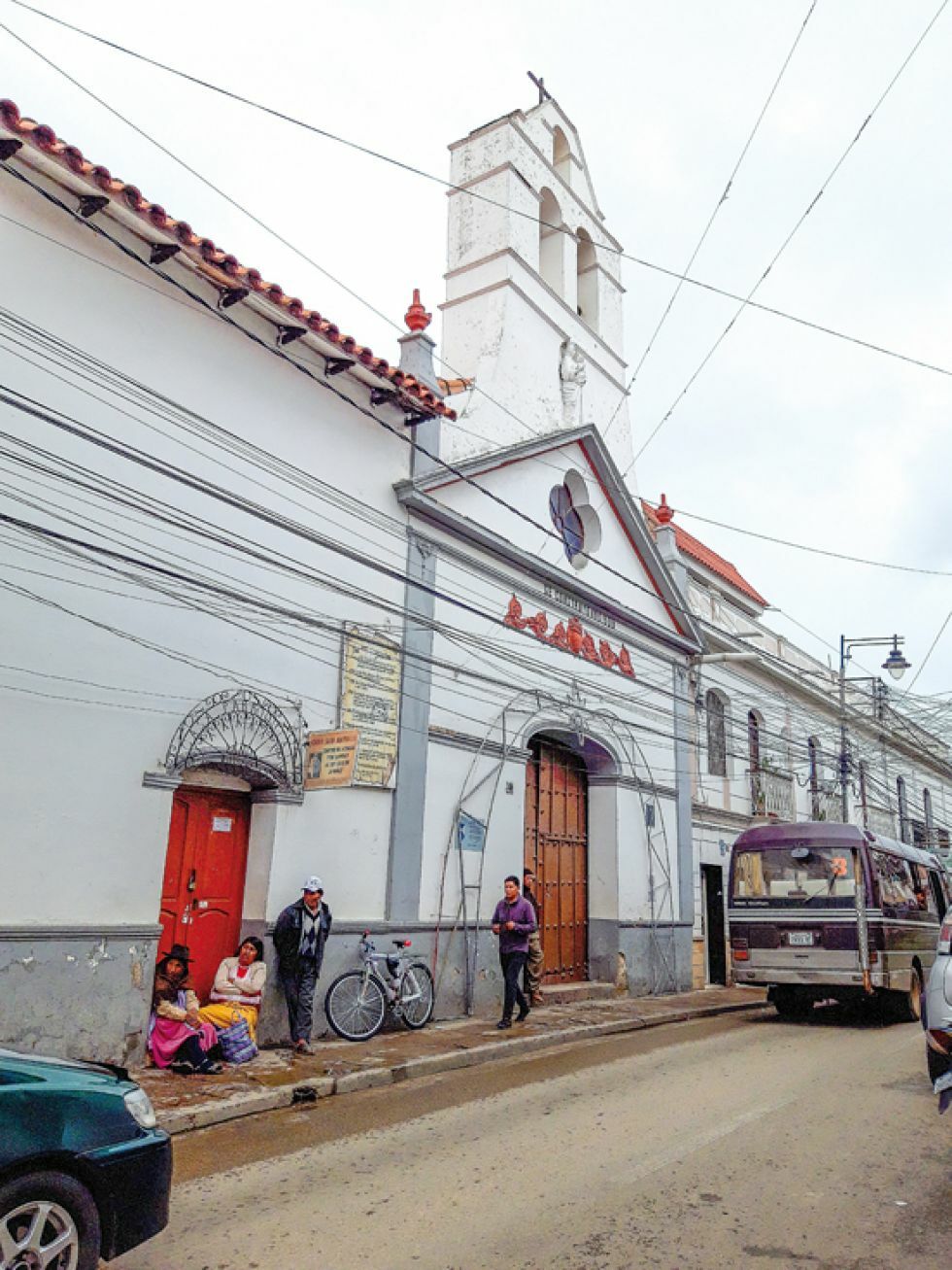 Built in the 16th century, it stands out for its battlements (of medieval defensive origin) on the sides of the upper part of the roof, as well as its belfry that runs parallel to the main nave. Inside, the main altar stands out, carved in cedar and gilded in baroque style, and the pulpit, which is among the best in Bolivia. Beautiful paintings by Melchor Pérez de Holguín hang on its walls, commissioned for the church and remaining there since.