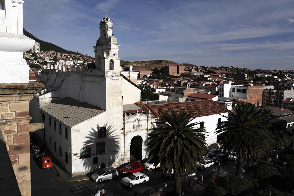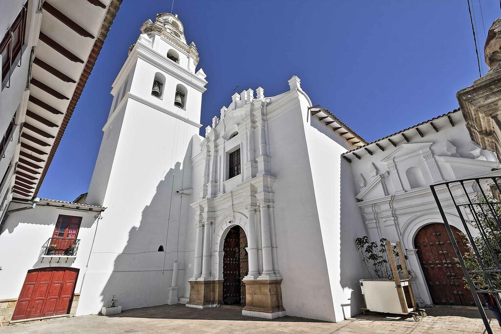 The ancient colonial construction "Iglesia Mayor de la Villa La Plata" is the largest religious monument in Charcas, elevated to the rank of Bishopric of La Plata in 1552 and Archbishopric in 1609, respectively. Construction began in 1559 and was completed in 1712. Initially Renaissance in style, it was later enriched with Baroque and Mestizo Baroque additions. The main altar, in Greco-Roman style, and the dome crowned by the famous Carabuco Cross, is adorned with silver plates. The side naves feature valuable crystal chandeliers in each arch. Inside, you can admire oil paintings by masters Montúfar and Bernardo Bitti. Externally, the atrium is surrounded by a stone balustrade, and in the protruding corner, there is a stone cross known as the "Rumi Cruz". The clock, located at the top of the tower, dating back to 1772, is over two centuries old. The construction of the balustrade dates back to 1804, and the iron railing in the Rococo style was installed later.
