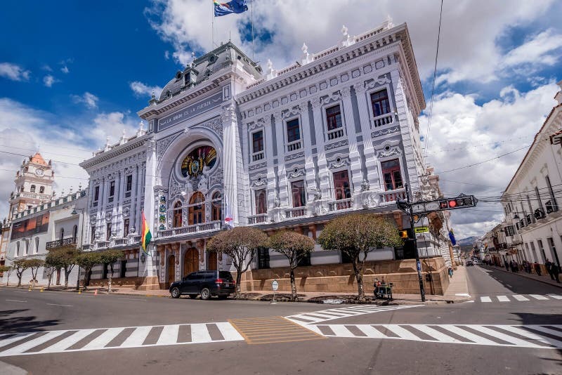 One of the first "modern" theaters to be built in Sucre is the Lírico Sucre Theater, currently known as the Gran Mariscal de Ayacucho Theater, which responds to the need for the capital of the republic to have a venue for operetta and zarzuela performances. This building bears a strong resemblance in its façade to the Scala in Milan. The attic section of the Lírico Theater in Sucre was not completed, and it lacks the pediment of the famous European lyric theater. The building represents a type that shows the advancement and development of theater in Europe, which is transmitted to the American region. This typology emerged in Europe in the 17th century, considered modern theaters (in Venice in 1630 and in Bolivia in 1642) with an elongated shape and rounded corners, almost in the form of a "U," where galleries disappear to be replaced by a main floor and boxes arranged at different heights. It was rehabilitated in 2006 and became the venue for the Constituent Assembly during the 2006-2007 period.
