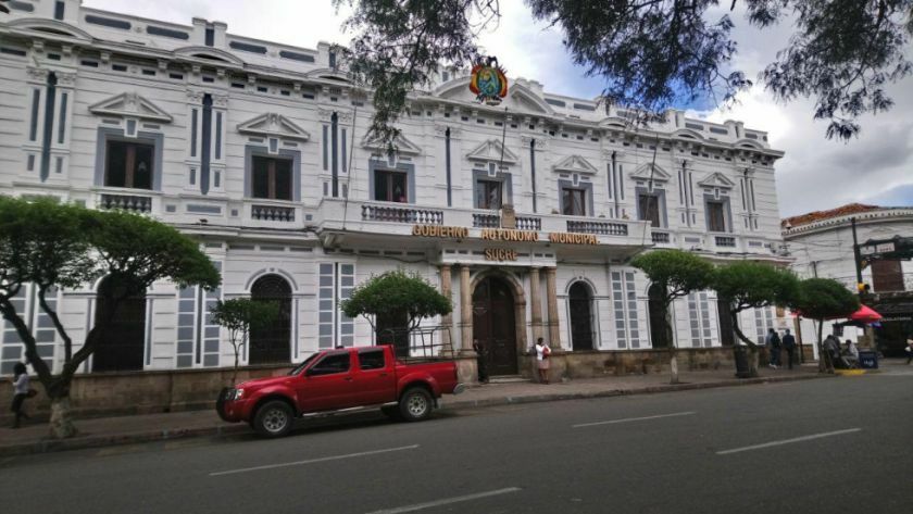 On the premises of the Municipal Government of Sucre, the Cabildo of Charcas, an old Spanish institution, used to function; in its time, it was one of the most important in the colony because the local government of the territory depended on it. It assumed the role of administering primary education and also functioned as a prison, where even a repressive apparatus was organized. The building was constructed three times throughout its history; the first was built by Veramendi in 1567, and it must have been very humble as it was demolished for being considered too modest.