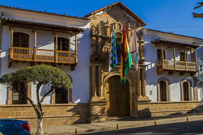Sa construction remonte à l'année 1621 par la Compagnie de Jésus, pour le fonctionnement de l'Université Pontificale de San Francisco Xavier, comprenant un large cloître entouré de galeries d'un seul étage, sous des couvertures soutenues par des colonnes en pierre granitique. Une porte en cèdre natif, cloutée de clous en bronze avec de grands heurtoirs. Au fond du cloître, devant le vestibule voûté, se dresse ce qui était la chapelle domestique de l'Université San Francisco Xavier. Elle était destinée à la fonction de Salle Principale où les candidats au grade de docteur exposaient leurs theses. À partir de juillet 1825, l'assemblée des députés des cinq provinces du Haut-Pérou fut convoquée par le Maréchal Antonio José de Sucre, pour délibérer sur le sort du pays. Celle-ci décida de proclamer l'indépendance le 6 août de cette année-là et de fonder la République Bolivar. C'est là qu'a été sanctionnée la première constitution de la Bolivie, rédigée par le Libérateur Simón Bolivar, ainsi que les lois fondamentales du nouvel État, et c'est là qu'il prêta serment en tant que premier Président de la République. Cela constitue une joyau architectural vicérinal et en même temps une importante relique historique, car dans ses murs s'est forgée l'indépendance de la République bolivienne.